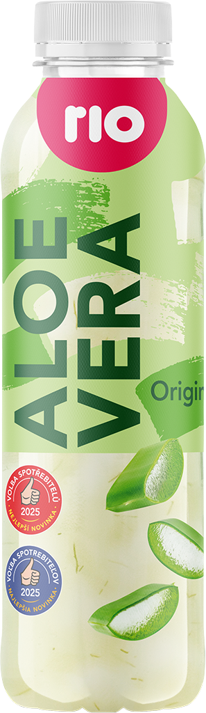 Nesycený ovocný nápoj s velkými šťavnatými kousky Aloe vera a hroznovou šťávou z koncentrátu.