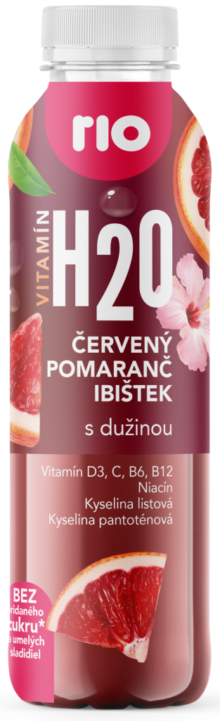 Vitamin water with pulp from red orange, enriched with hibiscus flower extract.